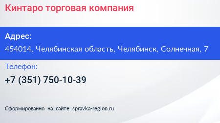 Кинтаро, торговая компания по адресу 454014, Челябинская область, Челябинск, Солнечная, 7 в дальнейшем Организация, размещена в следующих категориях: