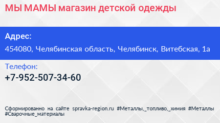 МЫ МАМЫ, магазин детской одежды по адресу 454080, Челябинская область, Челябинск, Витебская, 1а в дальнейшем Организация, размещена в следующих категориях: