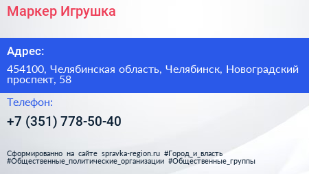 Маркер Игрушка по адресу 454100, Челябинская область, Челябинск, Новоградский проспект, 58 в дальнейшем Организация, размещена в следующих категориях: