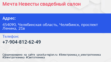 Мечта Невесты, свадебный салон по адресу 454090, Челябинская область, Челябинск, проспект Ленина, 21в в дальнейшем Организация, размещена в следующих категориях:
