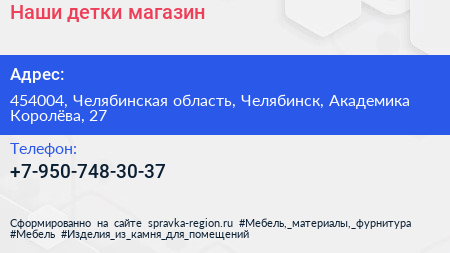 Наши детки, магазин по адресу 454004, Челябинская область, Челябинск, Академика Королёва, 27 в дальнейшем Организация, размещена в следующих категориях:
