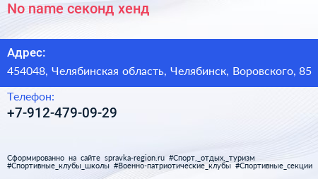 No name, секонд-хенд по адресу 454048, Челябинская область, Челябинск, Воровского, 85 в дальнейшем Организация, размещена в следующих категориях: