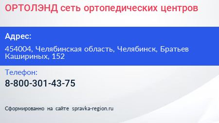 ОРТОЛЭНД, сеть ортопедических центров по адресу 454004, Челябинская область, Челябинск, Братьев Кашириных, 152 в дальнейшем Организация, размещена в следующих категориях: