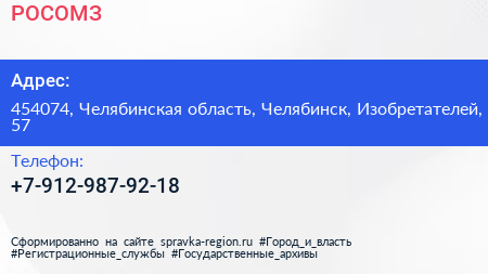 РОСОМЗ по адресу 454074, Челябинская область, Челябинск, Изобретателей, 57 в дальнейшем Организация, размещена в следующих категориях: