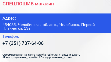 СПЕЦПОШИВ, магазин по адресу 454085, Челябинская область, Челябинск, Первой Пятилетки, 13в в дальнейшем Организация, размещена в следующих категориях: