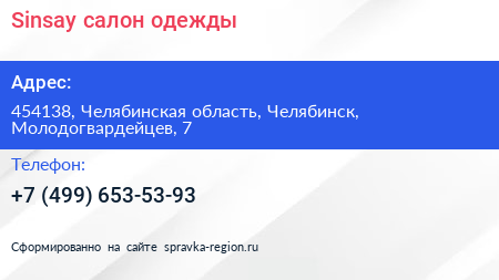 Sinsay, салон одежды по адресу 454138, Челябинская область, Челябинск, Молодогвардейцев, 7 в дальнейшем Организация, размещена в следующих категориях: