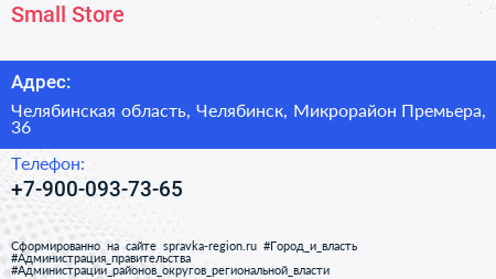 Small Store по адресу Челябинская область, Челябинск, Микрорайон Премьера, 36 в дальнейшем Организация, размещена в следующих категориях: