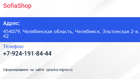 SofiaShop по адресу 454079, Челябинская область, Челябинск, Эльтонская 2-я, 42 в дальнейшем Организация, размещена в следующих категориях: