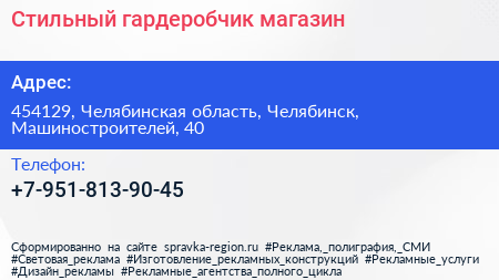 Стильный гардеробчик, магазин по адресу 454129, Челябинская область, Челябинск, Машиностроителей, 40 в дальнейшем Организация, размещена в следующих категориях: