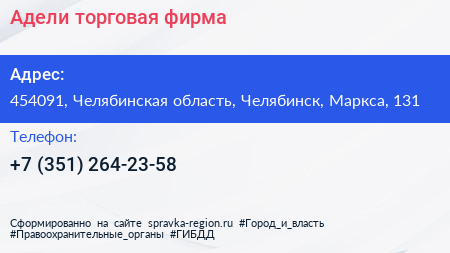 Адели, торговая фирма по адресу 454091, Челябинская область, Челябинск, Маркса, 131 в дальнейшем Организация, размещена в следующих категориях: