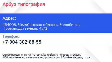 Арбуз, типография по адресу 454008, Челябинская область, Челябинск, Производственная, 4а/1 в дальнейшем Организация, размещена в следующих категориях: