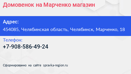 Домовенок на Марченко, магазин по адресу 454085, Челябинская область, Челябинск, Марченко, 18 в дальнейшем Организация, размещена в следующих категориях: