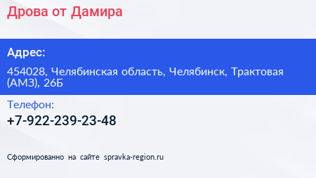 Дрова от Дамира по адресу 454028, Челябинская область, Челябинск, Трактовая (АМЗ), 26Б в дальнейшем Организация, размещена в следующих категориях: