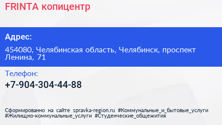 FRINTA, копицентр по адресу 454080, Челябинская область, Челябинск, проспект Ленина, 71 в дальнейшем Организация, размещена в следующих категориях: