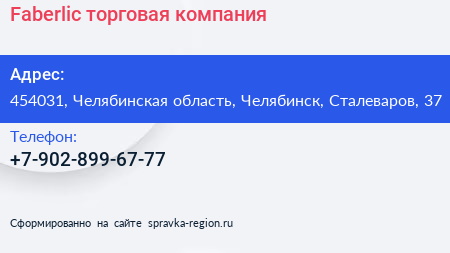 Faberlic, торговая компания по адресу 454031, Челябинская область, Челябинск, Сталеваров, 37 в дальнейшем Организация, размещена в следующих категориях: