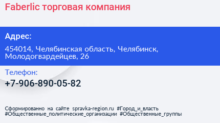Faberlic, торговая компания по адресу 454014, Челябинская область, Челябинск, Молодогвардейцев, 26 в дальнейшем Организация, размещена в следующих категориях: