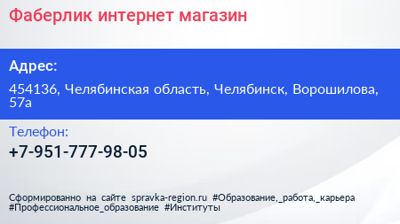 Фаберлик, интернет-магазин по адресу 454136, Челябинская область, Челябинск, Ворошилова, 57а в дальнейшем Организация, размещена в следующих категориях: