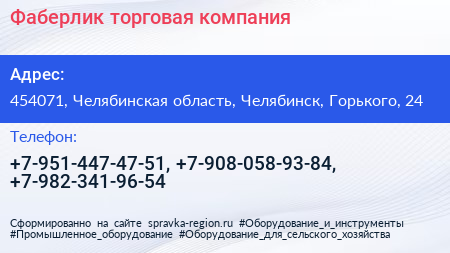Фаберлик, торговая компания по адресу 454071, Челябинская область, Челябинск, Горького, 24 в дальнейшем Организация, размещена в следующих категориях: