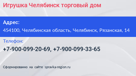 Игрушка-Челябинск, торговый дом по адресу 454100, Челябинская область, Челябинск, Рязанская, 14 в дальнейшем Организация, размещена в следующих категориях: