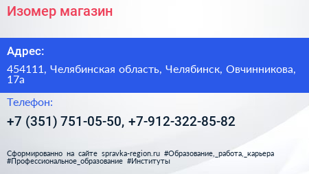 Изомер, магазин по адресу 454111, Челябинская область, Челябинск, Овчинникова, 17а в дальнейшем Организация, размещена в следующих категориях: