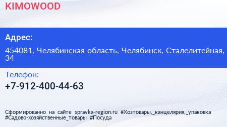 KIMOWOOD по адресу 454081, Челябинская область, Челябинск, Сталелитейная, 34 в дальнейшем Организация, размещена в следующих категориях: