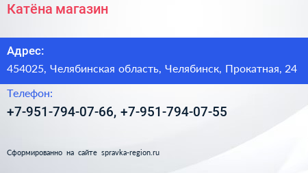 Катёна, магазин по адресу 454025, Челябинская область, Челябинск, Прокатная, 24 в дальнейшем Организация, размещена в следующих категориях: