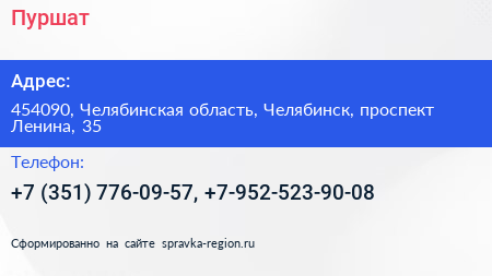 Пуршат по адресу 454090, Челябинская область, Челябинск, проспект Ленина, 35 в дальнейшем Организация, размещена в следующих категориях: