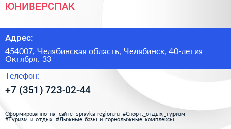 ЮНИВЕРСПАК по адресу 454007, Челябинская область, Челябинск, 40-летия Октября, 33 в дальнейшем Организация, размещена в следующих категориях: