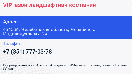 VIPгазон, ландшафтная компания по адресу 454036, Челябинская область, Челябинск, Индивидуальная, 2а в дальнейшем Организация, размещена в следующих категориях: