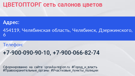 ЦВЕТОПТОРГ, сеть салонов цветов по адресу 454119, Челябинская область, Челябинск, Дзержинского, 6 в дальнейшем Организация, размещена в следующих категориях: