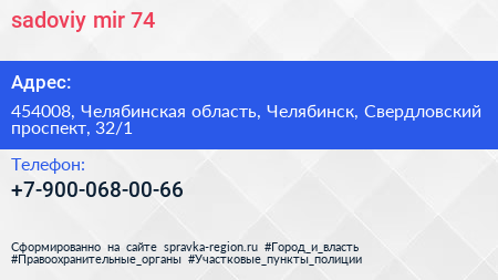 sadoviy mir 74 по адресу 454008, Челябинская область, Челябинск, Свердловский проспект, 32/1 в дальнейшем Организация, размещена в следующих категориях: