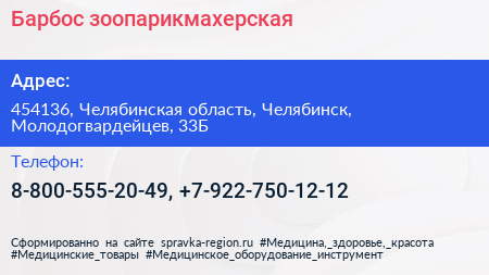 Барбос, зоопарикмахерская по адресу 454136, Челябинская область, Челябинск, Молодогвардейцев, 33Б в дальнейшем Организация, размещена в следующих категориях: