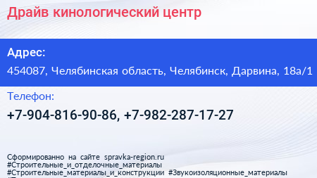 Драйв, кинологический центр по адресу 454087, Челябинская область, Челябинск, Дарвина, 18а/1 в дальнейшем Организация, размещена в следующих категориях: