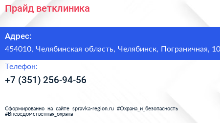 Прайд, ветклиника по адресу 454010, Челябинская область, Челябинск, Пограничная, 10 в дальнейшем Организация, размещена в следующих категориях: