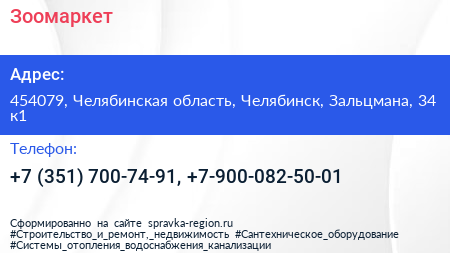 Зоомаркет по адресу 454079, Челябинская область, Челябинск, Зальцмана, 34 к1 в дальнейшем Организация, размещена в следующих категориях: