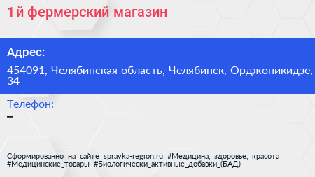 1-й фермерский, магазин по адресу 454091, Челябинская область, Челябинск, Орджоникидзе, 34 в дальнейшем Организация, размещена в следующих категориях:
