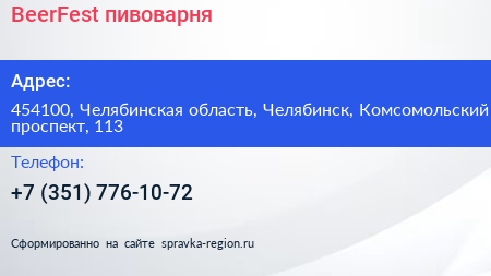 BeerFest, пивоварня по адресу 454100, Челябинская область, Челябинск, Комсомольский проспект, 113 в дальнейшем Организация, размещена в следующих категориях: