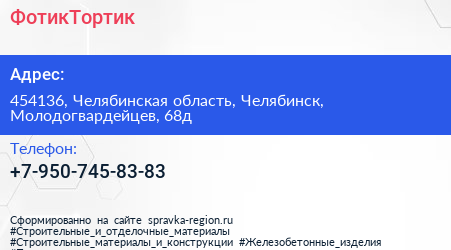 ФотикТортик по адресу 454136, Челябинская область, Челябинск, Молодогвардейцев, 68д в дальнейшем Организация, размещена в следующих категориях:
