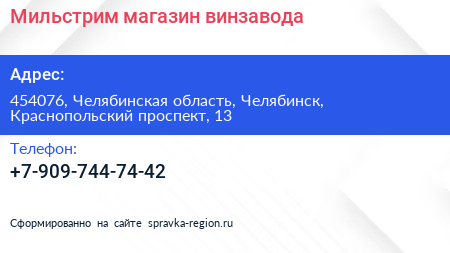 Мильстрим, магазин винзавода по адресу 454076, Челябинская область, Челябинск, Краснопольский проспект, 13 в дальнейшем Организация, размещена в следующих категориях: