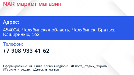 NAR маркет, магазин по адресу 454004, Челябинская область, Челябинск, Братьев Кашириных, 162 в дальнейшем Организация, размещена в следующих категориях: