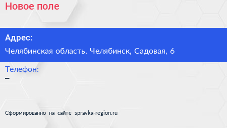Новое поле по адресу Челябинская область, Челябинск, Садовая, 6 в дальнейшем Организация, размещена в следующих категориях: