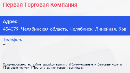 Первая Торговая Компания по адресу 454079, Челябинская область, Челябинск, Линейная, 96в в дальнейшем Организация, размещена в следующих категориях: