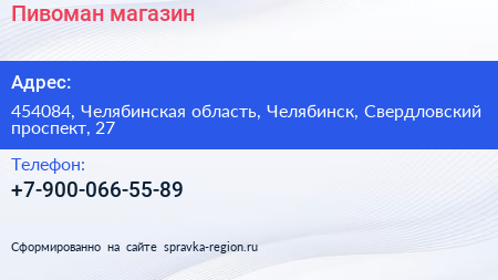 Пивоман, магазин по адресу 454084, Челябинская область, Челябинск, Свердловский проспект, 27 в дальнейшем Организация, размещена в следующих категориях: