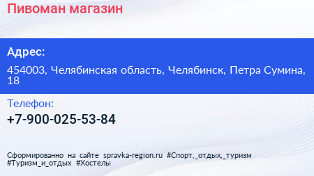 Пивоман, магазин по адресу 454003, Челябинская область, Челябинск, Петра Сумина, 18 в дальнейшем Организация, размещена в следующих категориях:
