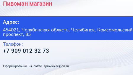 Пивоман, магазин по адресу 454021, Челябинская область, Челябинск, Комсомольский проспект, 85 в дальнейшем Организация, размещена в следующих категориях: