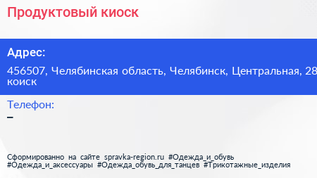 Продуктовый киоск по адресу 456507, Челябинская область, Челябинск, Центральная, 28 коиск в дальнейшем Организация, размещена в следующих категориях: