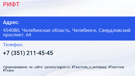 РИФТ по адресу 454080, Челябинская область, Челябинск, Свердловский проспект, 64 в дальнейшем Организация, размещена в следующих категориях: