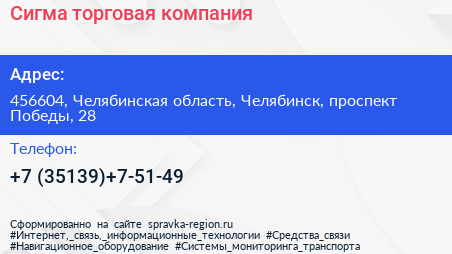 Сигма, торговая компания по адресу 456604, Челябинская область, Челябинск, проспект Победы, 28 в дальнейшем Организация, размещена в следующих категориях: