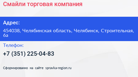 Смайли, торговая компания по адресу 454038, Челябинская область, Челябинск, Строительная, 6а в дальнейшем Организация, размещена в следующих категориях: