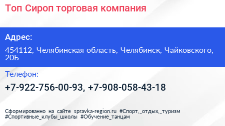 Топ-Сироп, торговая компания по адресу 454112, Челябинская область, Челябинск, Чайковского, 20Б в дальнейшем Организация, размещена в следующих категориях: